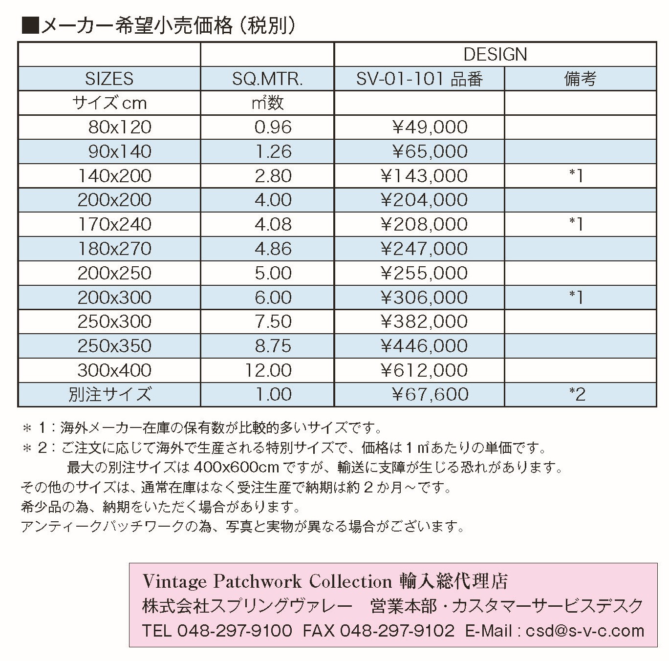 ビンテージパッチワークコレクション Vintage Patchwork 価格表(税別)