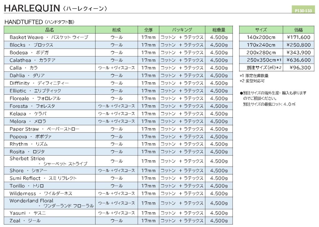 ※ハーレクィーン HARLEQUIN ラグ・コレクションの製品一覧